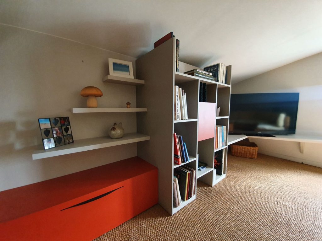 Entre la télévision, la box, l’amplificateur, les consoles ou encore le stockage numérique, place aux solutions innovantes ! Le meuble TV sur mesure accueille astucieusement l’ensemble de vos équipements sans impression de surcharge. Ventilation intégrée, passages de câbles discrets, accès simplifié aux branchements… tout est finement pensé pour garantir un fonctionnement fiable. Et, bien sûr, une utilisation confortable dans le temps !